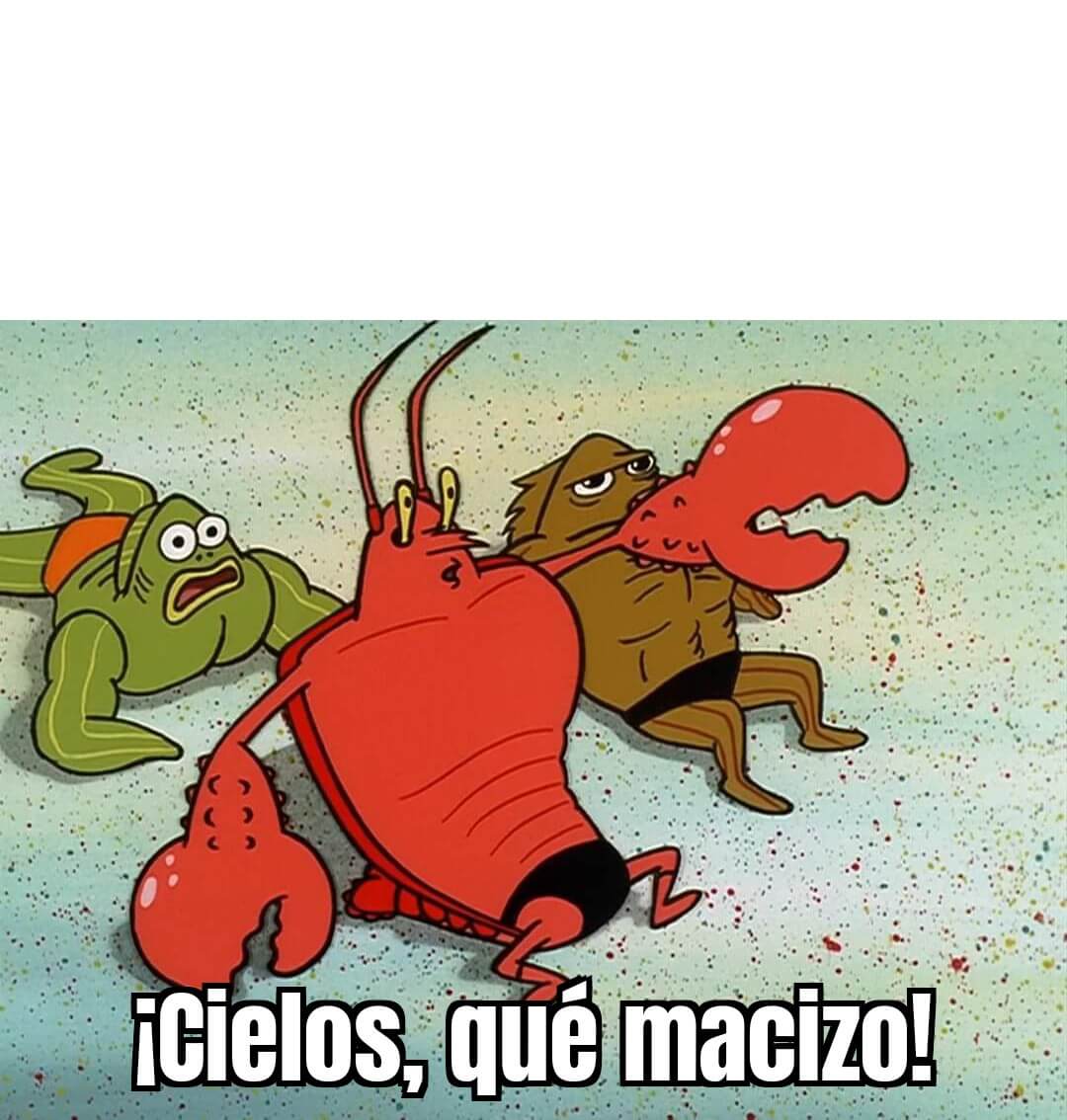 Larry y sus compañeros se muestran asombrados ante la (falsa) musculatura de Bob Esponja.