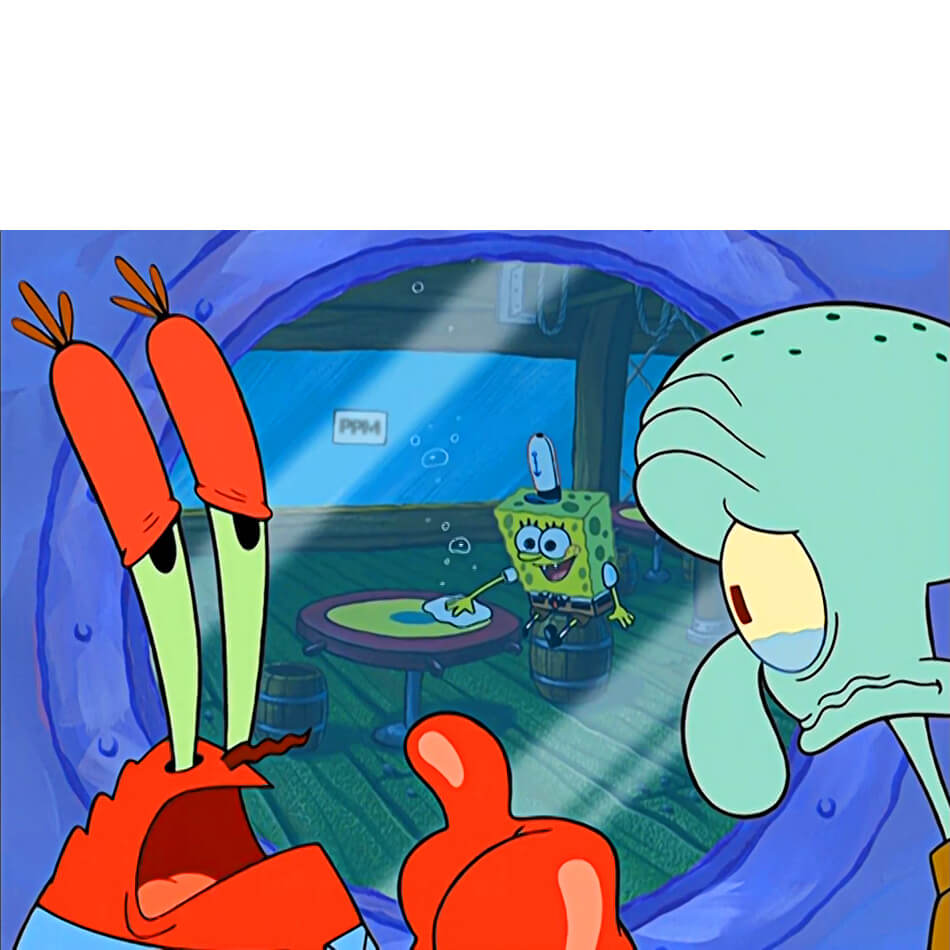 Después de que Bob Esponja agradeció a Calamardo por el pastel, Don Cangrejo lo regaña y Calamardo se pone a pensar en qué manera va a morir Bob Esponja, ya que el pastel era un explosivo. Luego, ambos empiezan una conversación donde ambos se ponen tristes.