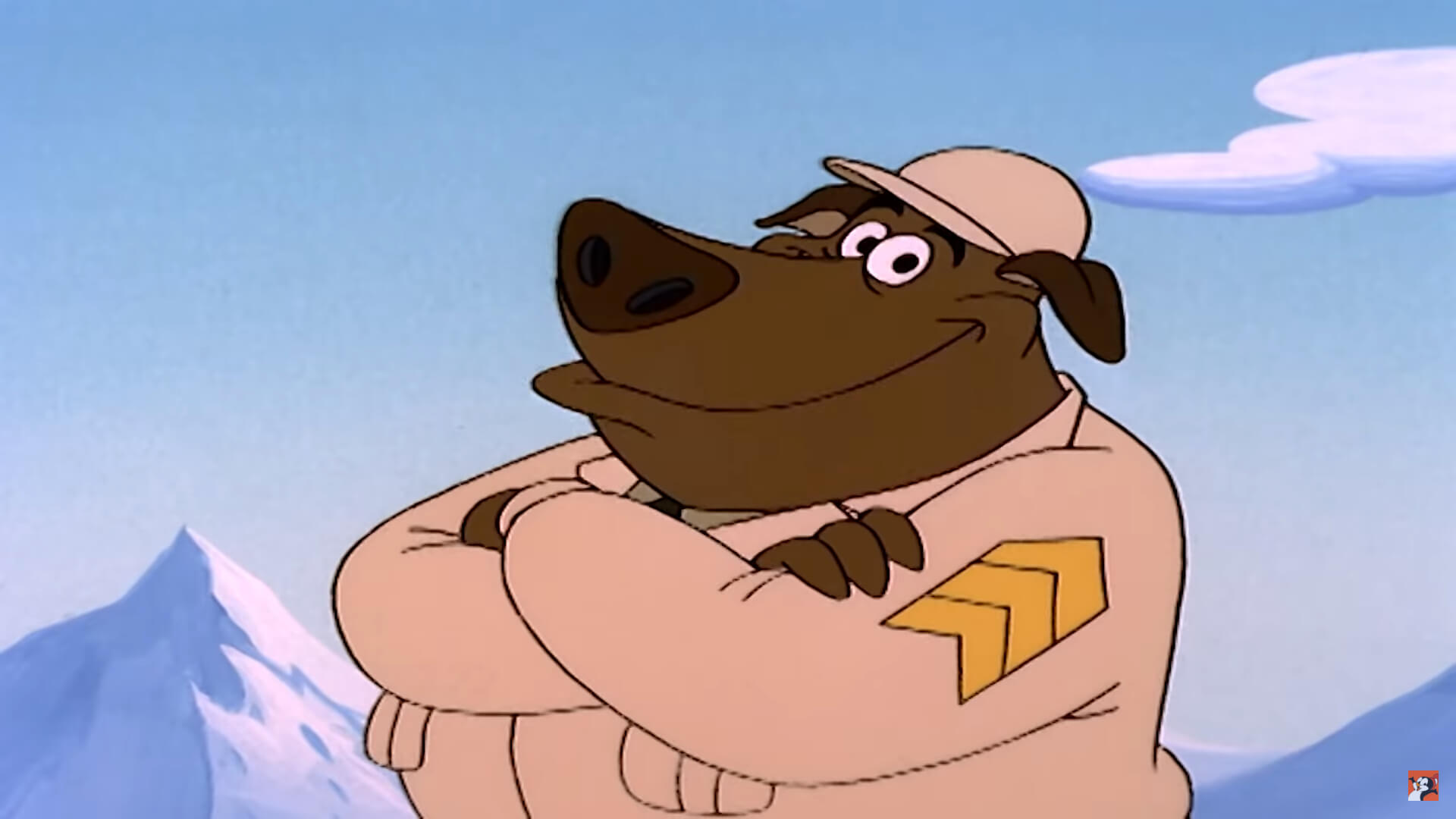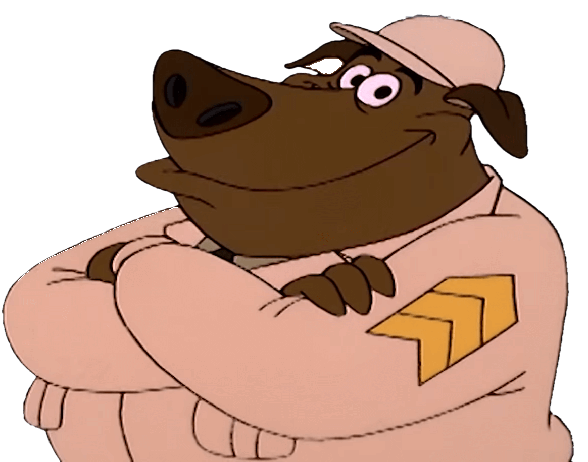 El perro sargento le ordena a Chilly cavar una trinchera.